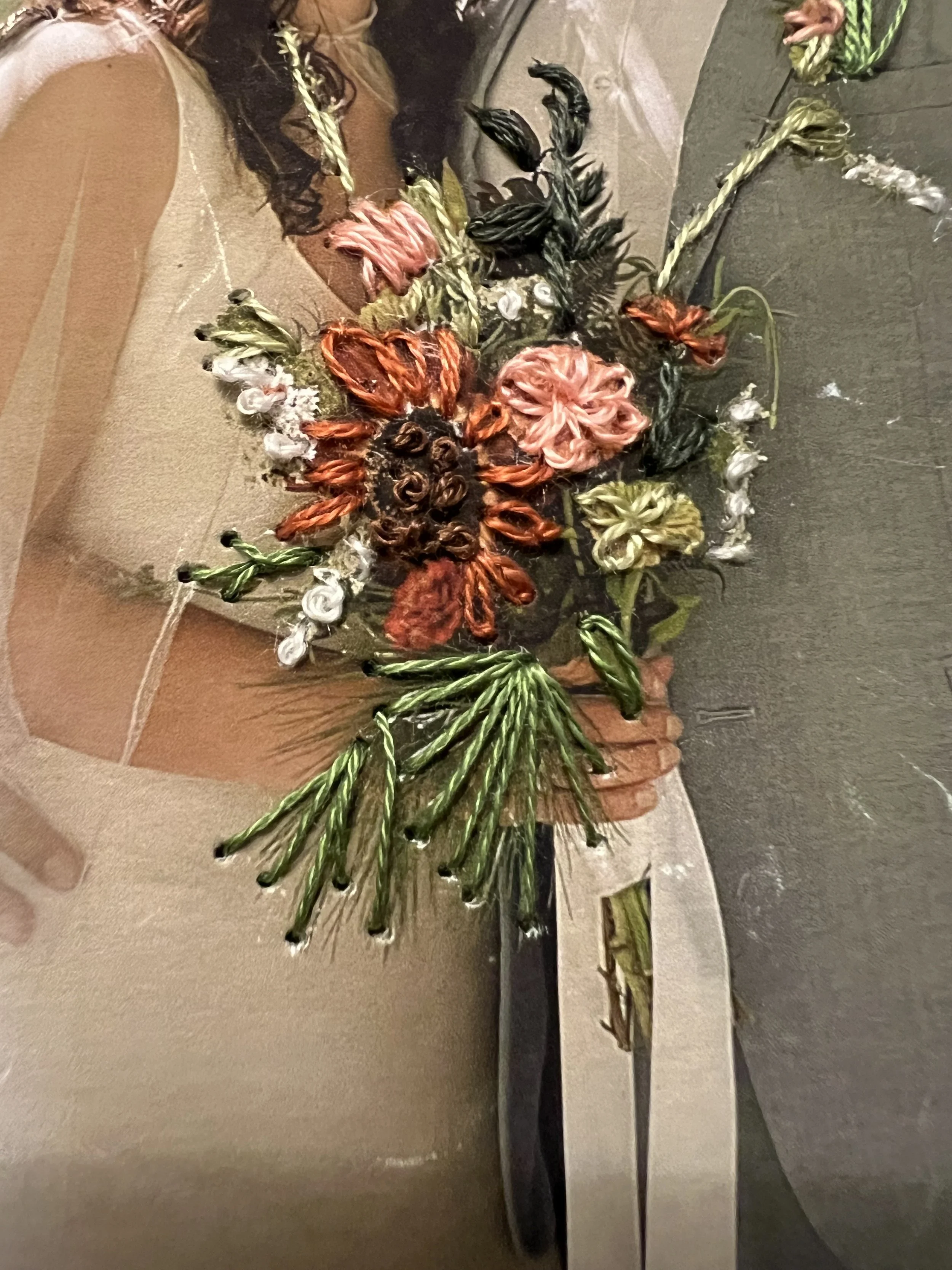 I’ve also added embroidery to photos. I love to print through the website Mpix using their fine art paper, carefully embroider added details, and then gift an heirloom item. This is something I also offer in my Etsy shop.